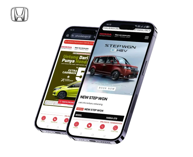 Project terbaru ini bekerjasama dengan sales honda bogor untuk menampilkan website yang ringan dan mudah diakses serta dapat digunakan untuk media iklan / google ads klien. Cekn project pembuatan website sales mobil kami disini.